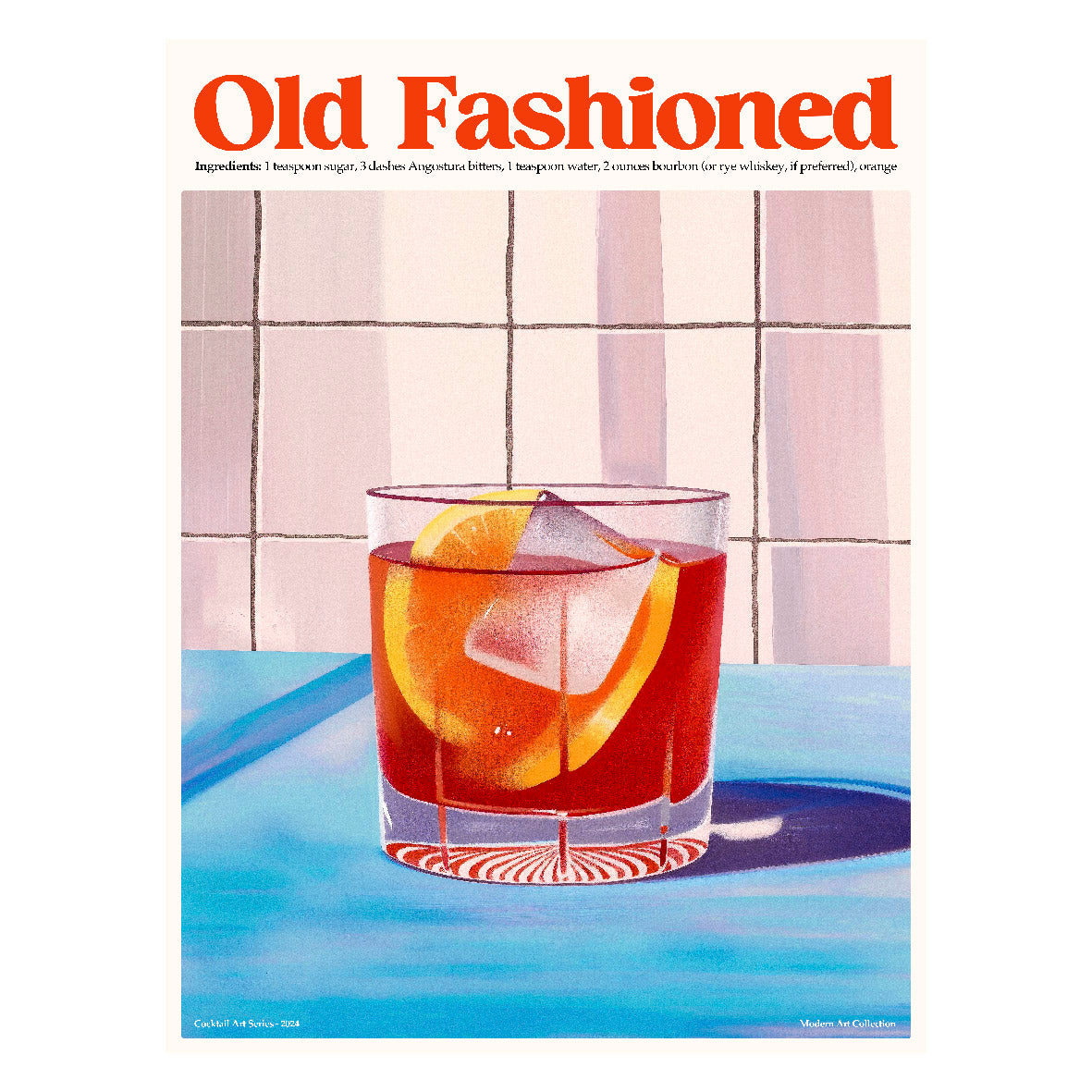 Decorative "Coctel Art Collection: Old Fashioned" Poster | High-Quality Print | Repositionable Adhesive