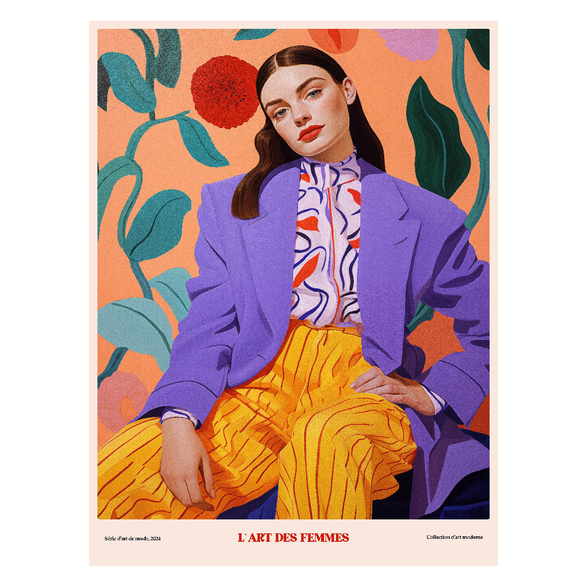 Decorative "L' Art des Femmes: Woman in Purple" Poster | High-Quality Print | Repositionable Adhesive